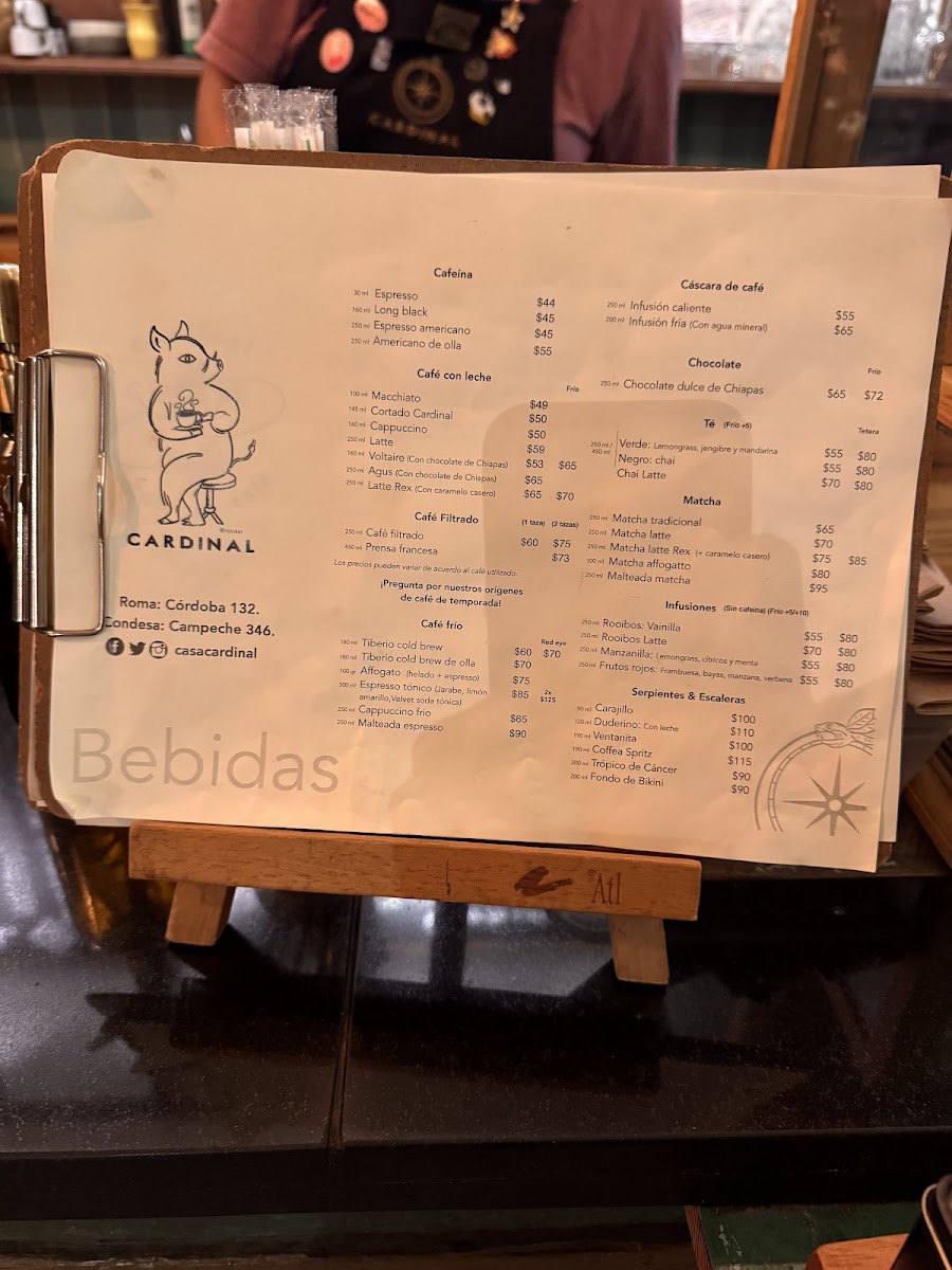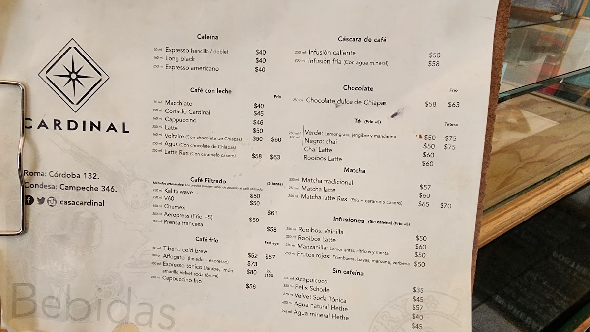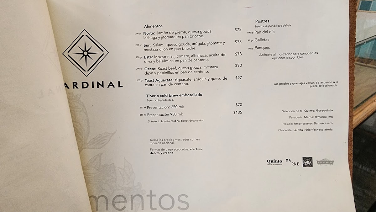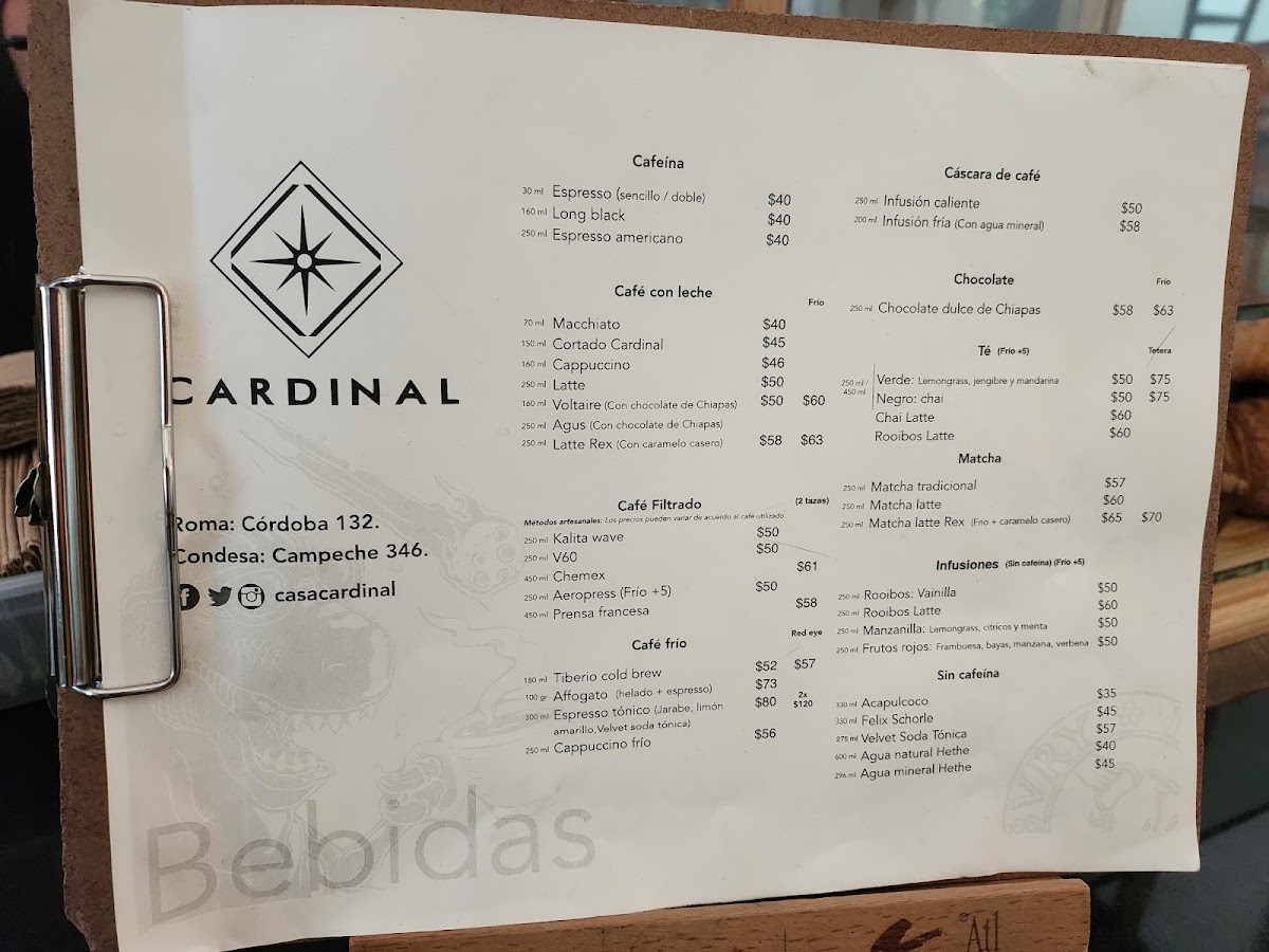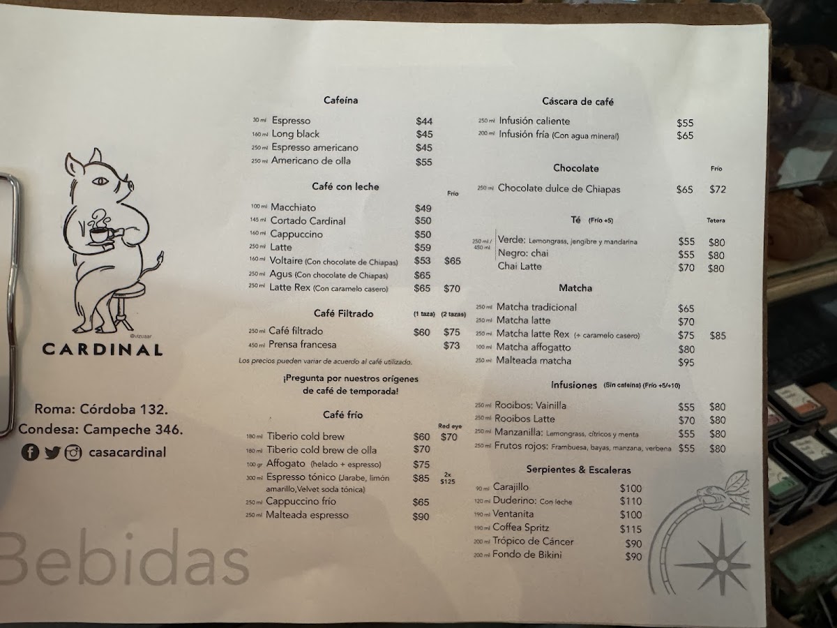 Cardinal Casa de Café, located in the vibrant Roma Norte neighborhood of Mexico City, offers a carefully crafted menu that celebrates quality and variety. Coffee enthusiasts will appreciate their selection of single-origin brews like Finca Loma del Coyote and Costa Rica, each priced at MX$95.00 and bursting with notes of yellow fruits, cacao, and caramel.